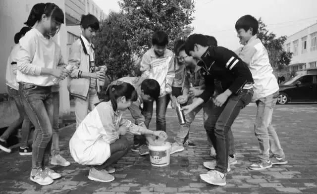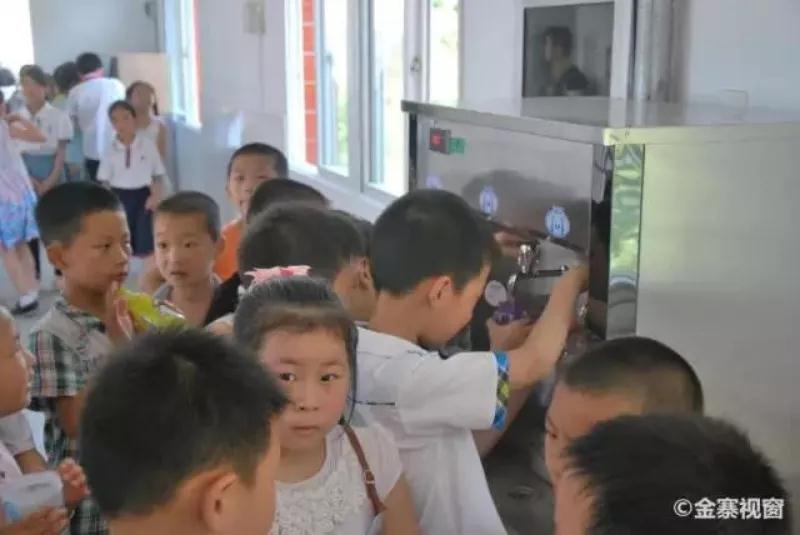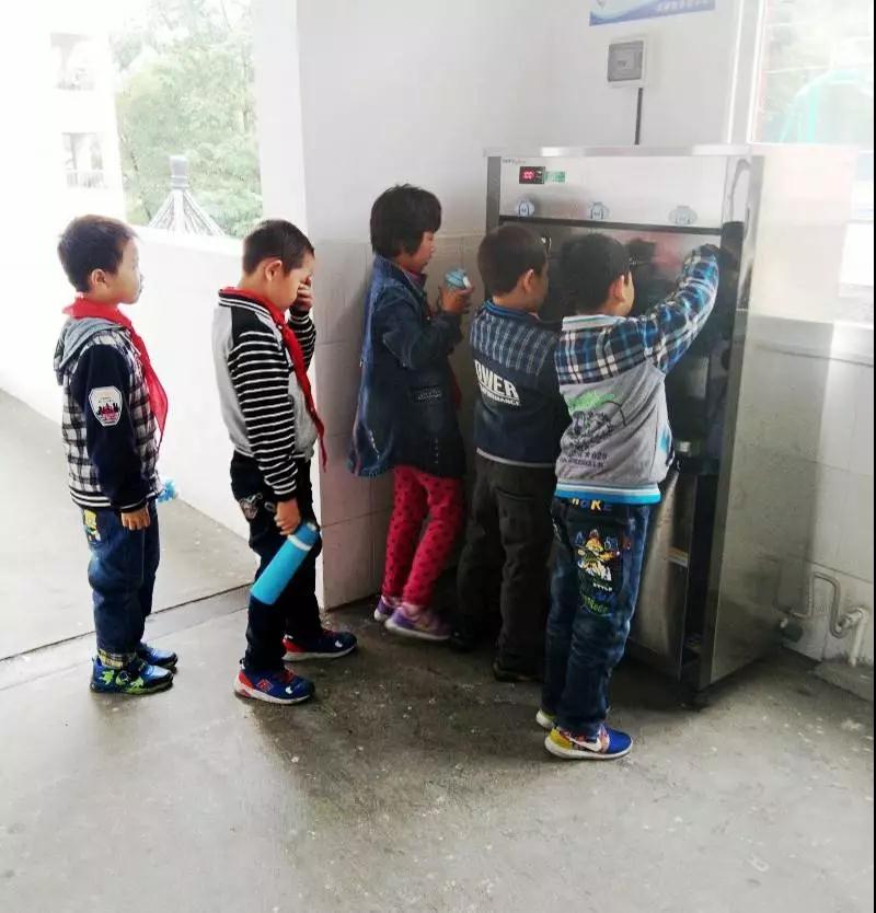 已安裝過凈水加熱設(shè)備的學(xué)校,孩子們正在排隊(duì)打水