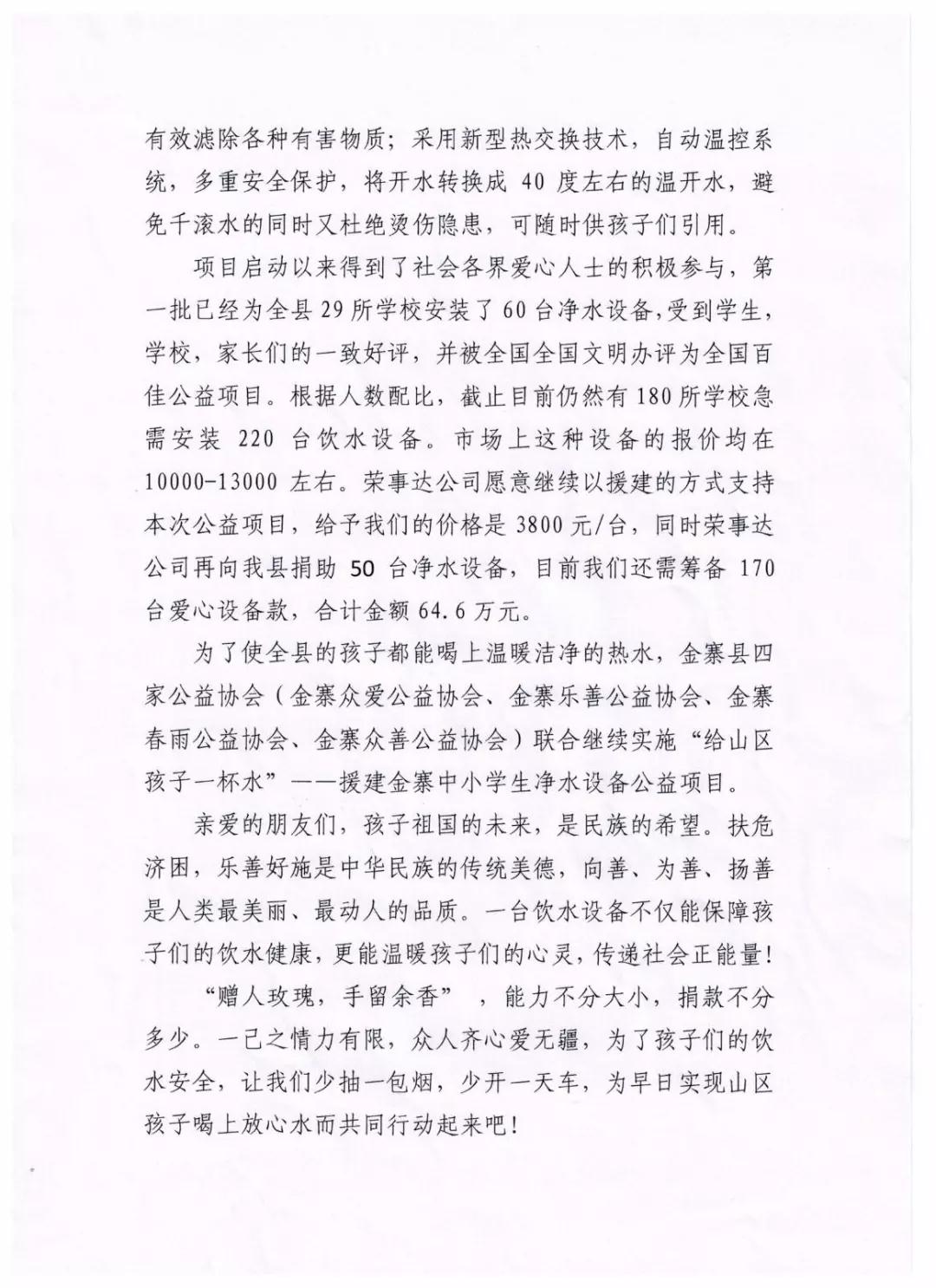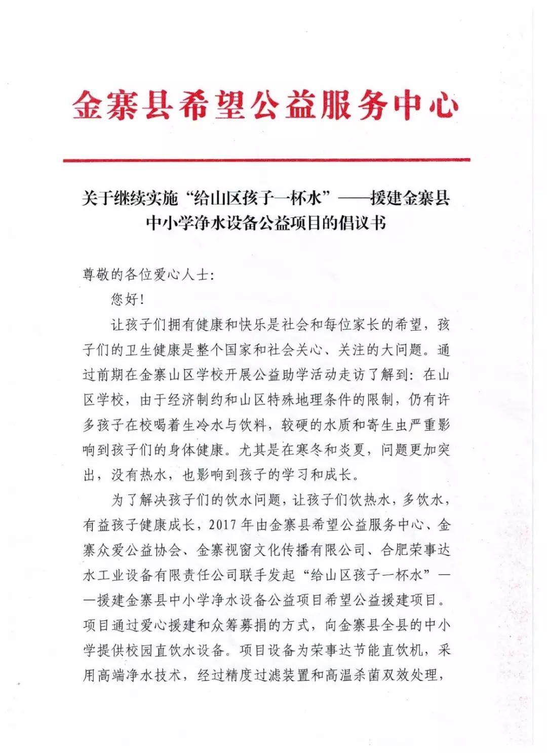 援建金寨縣中小學(xué)凈水設(shè)備公益項(xiàng)目的倡議書