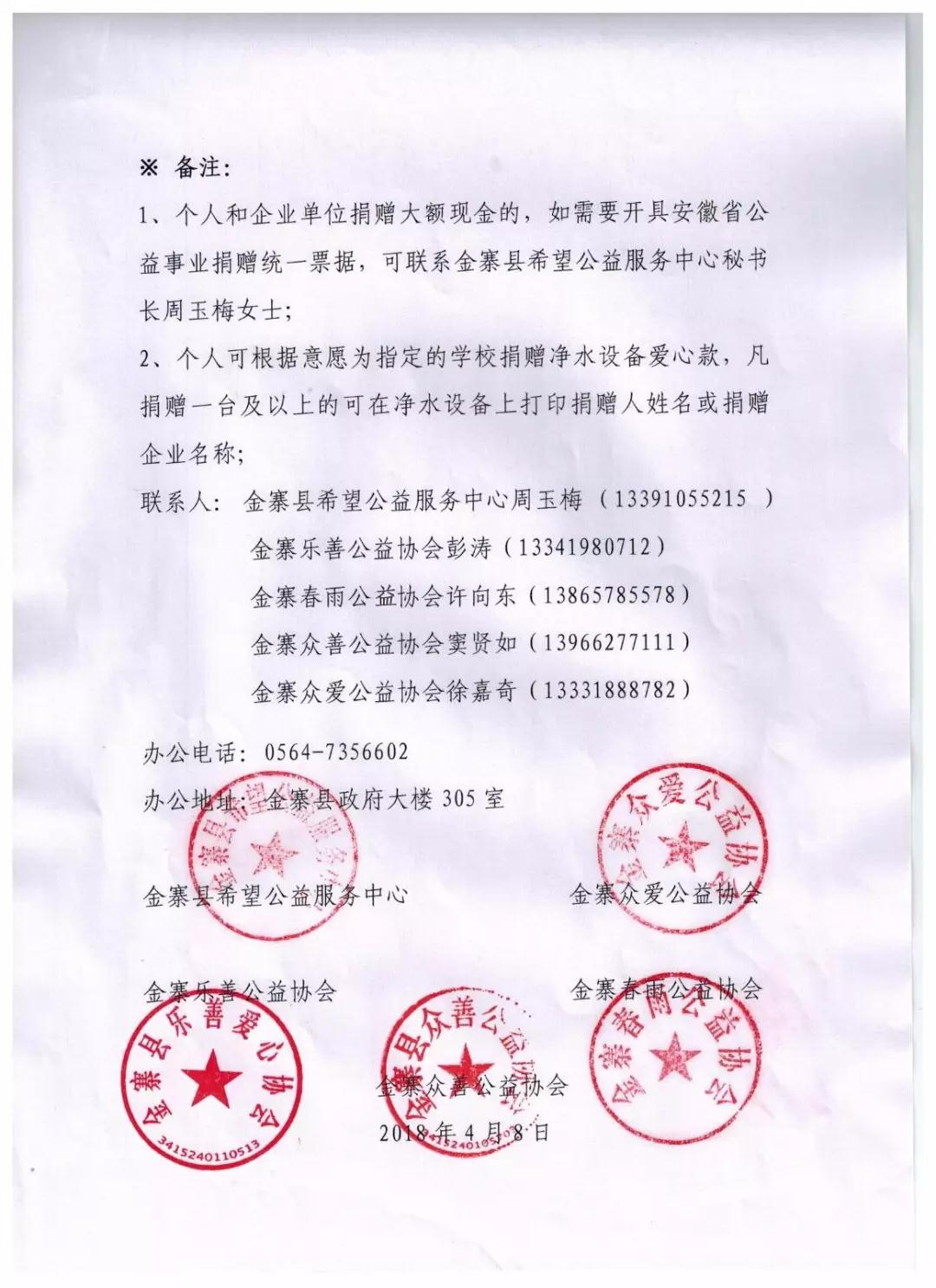 為了使全縣的孩子都能喝上溫暖潔凈的熱水,金寨縣四家公益協(xié)會(金寨眾愛公益協(xié)會、金寨樂善公益協(xié)會、金寨春雨公益協(xié)會、金寨眾善公益協(xié)會)聯(lián)合合肥榮事達(dá)水工業(yè)設(shè)備有限責(zé)任公司繼續(xù)實(shí)施“給山區(qū)孩子一杯水”——援建金寨中小學(xué)生凈水設(shè)備公益項(xiàng)目。