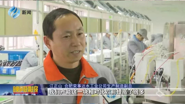 2月13日晚21時(shí)30分,合肥新聞?lì)l道《晚間播報(bào)》節(jié)目播出新聞《人勤春來(lái)早 新車間開(kāi)啟新目標(biāo)》,榮事達(dá)水工業(yè)公司作為本土知名企業(yè),在新春伊始全面開(kāi)啟生產(chǎn)模式,公司全新投入使用的全自動(dòng)智能化生產(chǎn)線、檢測(cè)線上已是一片忙碌景象。
