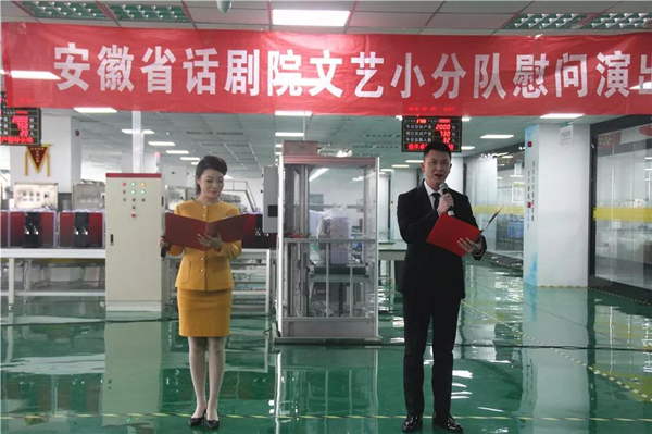 安徽省話劇院成立于1953年,幾代話劇人秉承文藝為人民服務(wù)的宗旨,薪火相傳,不斷開拓文化藝術(shù)領(lǐng)域,為我省文化事業(yè)做出了突出貢獻,豐富著人民群眾的藝術(shù)生活。為更好地關(guān)心職工群眾生活、加強和創(chuàng)新地區(qū)企業(yè)文化發(fā)展、構(gòu)建和諧勞動關(guān)系,安徽省話劇院開展“文藝輕騎兵全省巡演”活動,走進廣大基層企業(yè)。2月25日,由安徽省話劇院段曉波院長、黃磊院長帶領(lǐng)的巡演文藝小分隊走進榮事達水工業(yè)集團進行慰問表演,并帶來了多個精彩紛呈的藝術(shù)節(jié)目。