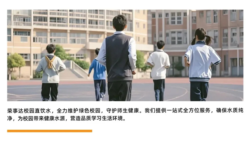 榮事達(dá)校園直飲水已為全國眾多幼兒園、小學(xué)、中學(xué)以及大學(xué)帶去健康好水,贏得了師生青睞。榮事達(dá)校園直飲水還可根據(jù)每所學(xué)校的具體需求量身定制直飲方案。從需求分析、方案設(shè)計、設(shè)備選型到安裝調(diào)試、后期運維,榮事達(dá)提供了一站式、全方位的服務(wù),確保了直飲水項目的順利實施與高效運行。