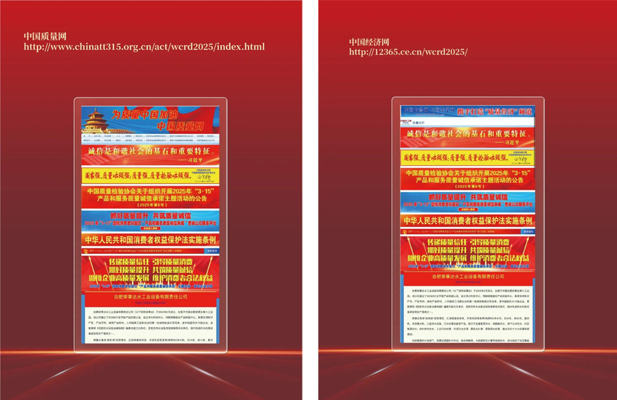 在由中國質量檢驗協(xié)會主辦的2025年“3.15”產品和服務質量誠信承諾的主題活動中,榮事達水工業(yè)公司憑借卓越的產品品質及良好的社會形象,獲得協(xié)會以及專家的一致認可,榮膺“全國行業(yè)質量領先品牌” “全國產品和服務質量誠信承諾企業(yè)” “全國消費者質量信譽保障產品” “全國質量檢驗穩(wěn)定合格產品”多項榮譽,并在中國質量網、中國經濟網、中國產品質量信譽網等多家媒體上集中展示和公告。