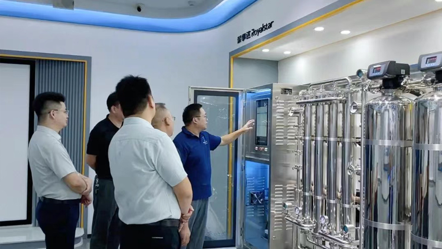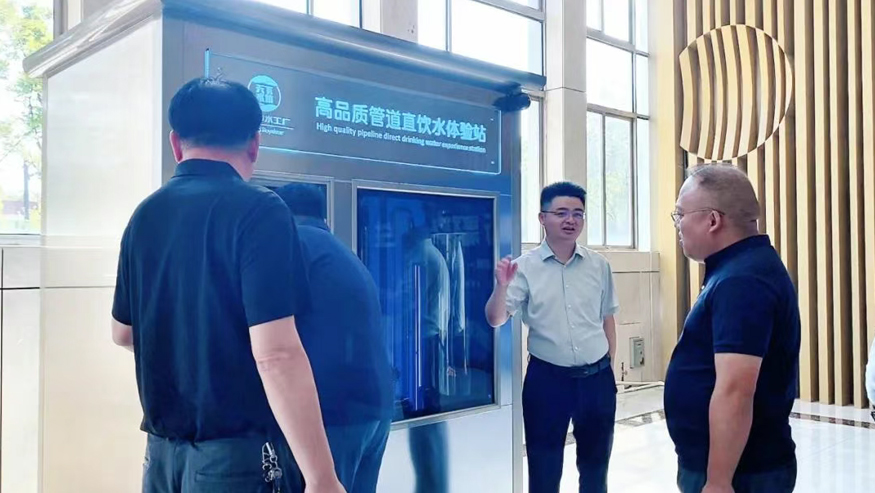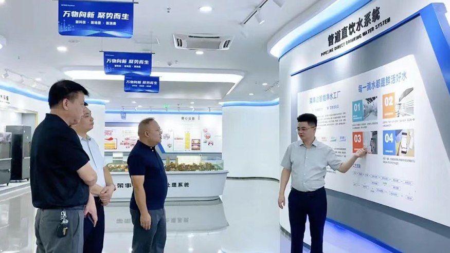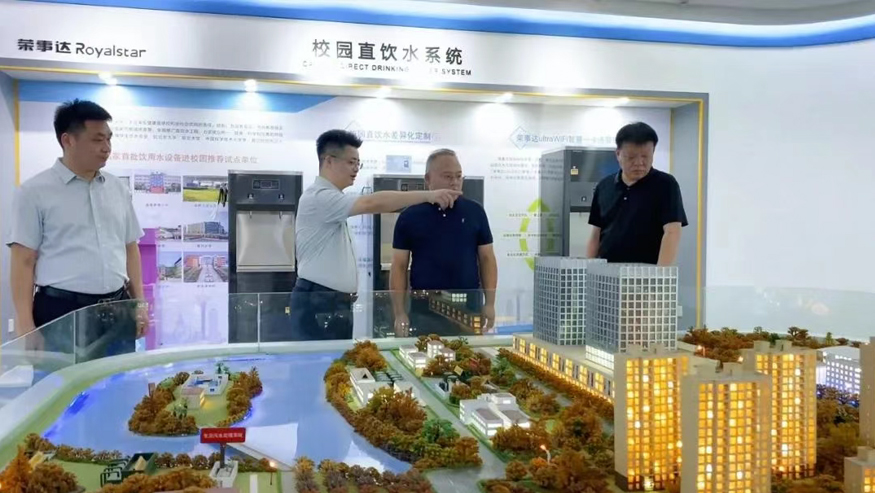 白冰董事長一行認真聽取講解,還就榮事達管道直飲水項目的設備性能、技術原理等細節(jié)與陪同人員深入交流。榮事達管道直飲水項目是針對社區(qū)、學校、醫(yī)院、企事業(yè)單位及工廠等場景,提供定制化飲水模式,涵蓋社區(qū)智慧水站、校園智慧凈水屋、高端直飲水設備及變頻供回水系統,旨在為民眾打造便捷、高端、健康的飲水服務。