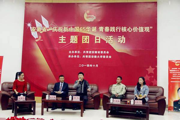 2014年10月18日下午,安徽省“慶祝新中國(guó)65華誕,青春踐行核心價(jià)值觀”主題團(tuán)日活動(dòng)在安徽大學(xué)舉辦。榮事達(dá)水工業(yè)董事長(zhǎng)雷鳴受邀出席“我的中國(guó)夢(mèng)——奮斗的青春最美麗”分享座談會(huì)。