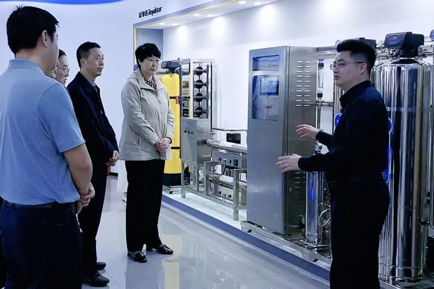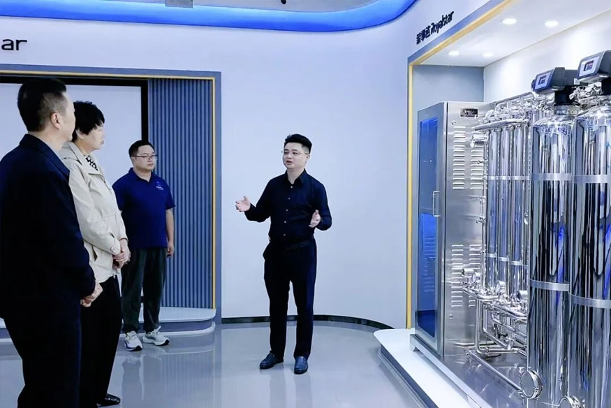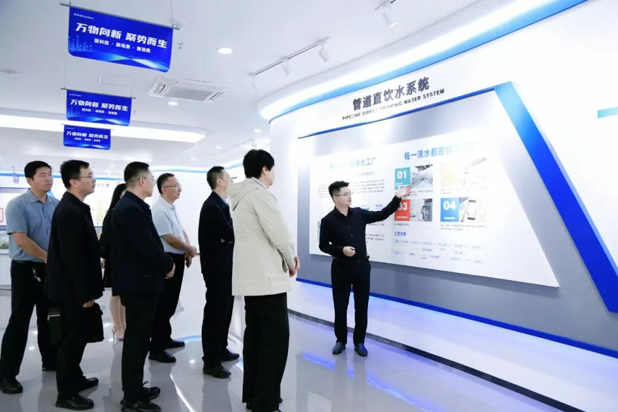 領(lǐng)導(dǎo)一行參觀公司全屋智慧凈水、管道直飲水、校園智慧飲水、單位/工廠直飲水等項目,了解公司在凈水行業(yè)全領(lǐng)域的發(fā)展情況。