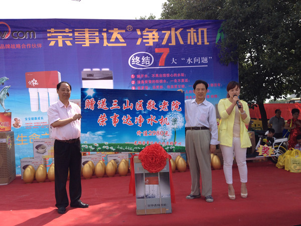 榮事達(dá)水工業(yè)公司一直踐行公益,關(guān)注社會(huì)弱勢(shì)群體飲水安全,蕪湖營(yíng)銷管理中心自成立以來,開展了各種形式的公益活動(dòng)。7月上旬,榮事達(dá)凈水機(jī)攜手蕪湖市老年協(xié)會(huì)到三山敬老院進(jìn)行慰問演出,為老人們奉上了精彩的歌舞表演,給他們帶去了歡樂,并向該院捐贈(zèng)了凈水機(jī),讓老人們能喝上放心水。