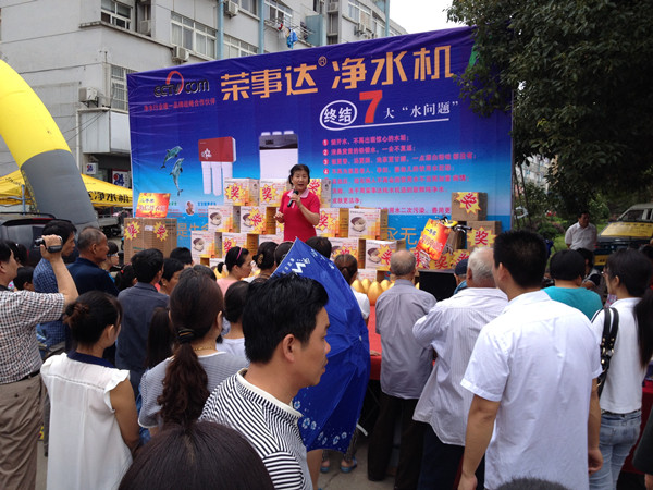 為打開市場(chǎng)、推廣產(chǎn)品,蕪湖管理中心舉辦了多次市場(chǎng)活動(dòng)。7月5日,榮事達(dá)凈水機(jī)“送健康 進(jìn)萬家”感恩回饋活動(dòng)在蕪湖市三山區(qū)順利舉行,現(xiàn)場(chǎng)人氣爆棚。消費(fèi)者購(gòu)機(jī)不但能享受價(jià)格優(yōu)惠,還能砸金蛋抽大獎(jiǎng)。活動(dòng)當(dāng)天,現(xiàn)場(chǎng)成交凈水機(jī)達(dá)34臺(tái),電動(dòng)車、洗衣機(jī)等大獎(jiǎng)均被抽出。