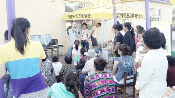講座上,榮事達(dá)工作人員播放了央視播出的關(guān)于飲用水污染的新聞視頻,分發(fā)了單頁(yè),讓居民更深入地了解健康飲水知識(shí)。據(jù)居民介紹,當(dāng)?shù)氐乃|(zhì)確實(shí)大不如從前,但他們依舊正常飲用,只是逢年過(guò)節(jié)許多外出務(wù)工、求學(xué)的人回來(lái),喝著這水腸胃不服,都去超市買(mǎi)礦泉水喝。在活動(dòng)現(xiàn)場(chǎng),工作人員運(yùn)用科學(xué)實(shí)驗(yàn)做了水質(zhì)測(cè)試,用數(shù)據(jù)直觀地向居民反映了東寧縣水質(zhì)狀況。
