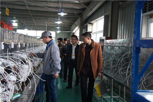 在產(chǎn)品展廳,華中大區(qū)總監(jiān)劉明明為參觀人員介紹了公司產(chǎn)品種類、功能,并分析了凈水行業(yè)的現(xiàn)狀和發(fā)展前景。之后,一行十余人參觀了園區(qū),看到整齊停放的服務(wù)車,參觀者連連稱贊公司這一加盟政策給力,既方便了代理商跑市場(chǎng),又是十分有效的宣傳方式。在生產(chǎn)車間,參觀者一邊認(rèn)真聽(tīng)取講解,一邊仔細(xì)觀看生產(chǎn)環(huán)節(jié),零距離接觸生產(chǎn)線,親身感受操作流程。