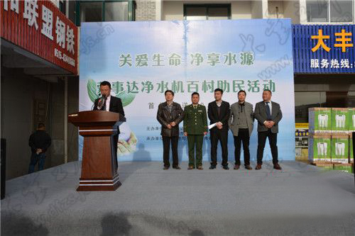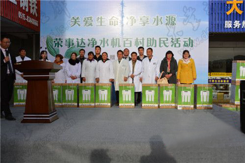 4月17日下午,“關(guān)愛生命 凈享水源”榮事達凈水機百村助民活動捐贈儀式順利舉行,榮事達水工業(yè)公司聯(lián)合當?shù)亟?jīng)銷商向江蘇省大豐市各村鎮(zhèn)衛(wèi)生院、工商、公安、消防等部門首批捐贈凈水機300臺。