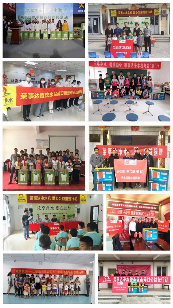 03 榮事達(dá)水工業(yè)經(jīng)銷商積極響應(yīng)集團(tuán)公益倡議,熱衷于健康助學(xué)、愛(ài)心敬老、愛(ài)心助殘、疫情防控等多種形式的公益行動(dòng),截止到目前,經(jīng)銷商們的公益活動(dòng)已遍及安徽、南京、湖南、江蘇、陜西、江西、河南、河北等多個(gè)地區(qū),以健康好水,溫暖每一個(gè)城市。