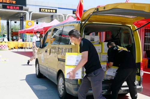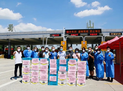 8月6日上午,團市委書記馬進偉、合肥市青年志愿者協(xié)會相關(guān)領(lǐng)導(dǎo)、榮事達水工業(yè)集團董事長雷鳴一行人來到蜀山高速道口看望正在辛苦奮戰(zhàn)在一線的青年志愿者們,為他們帶來了蘇打水、淡鹽水等飲品。