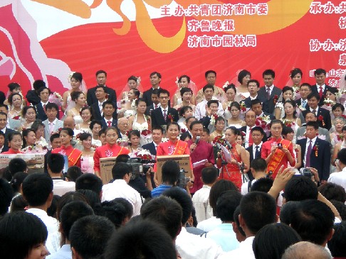 摘要:9月20日,備受關(guān)注的“圓百年夢(mèng)想,結(jié)百年情緣——2008中國(guó)濟(jì)南市齊魯情玫瑰婚典”大型集體婚禮在濟(jì)南市泉城廣場(chǎng)開幕,本屆是由濟(jì)南市團(tuán)市委、杭...